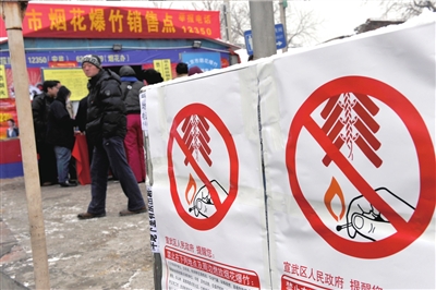 3每個(gè)銷售點(diǎn)前都有禁止燃放的提示。 記者 董世彪攝