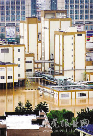 昨天上午一場暴雨,廣東省東莞市南城區莞太大道123號再次被齊膝深的大水包圍。這里是雀巢咖啡廠,為整個中國生產雀巢咖啡和咖啡伴侶。自從13日大雨,被突如其來的洪水淹沒,這里已經停產5天了。