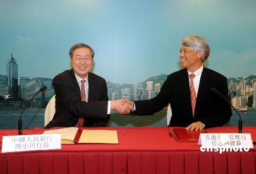 人民銀行行長周小川29日在香港與金管局總裁任志剛簽訂相關補充合作備忘錄,香港企業可與上海、廣州、深圳、珠海和東莞五個地方的試點企業,選擇以人民幣進行貿易結算。