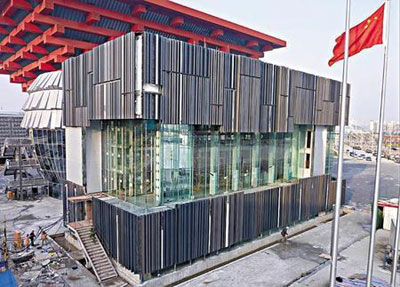 另外,底層和頂層的鋁板上有很多小孔,方便采光,而鋁板和玻璃皆可循環再用。陳子敬希望可以原址保留香港館。他說,早前已向世博組織方表達過意愿,而組織方面表示會考慮。