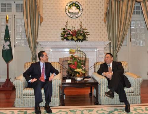 唐英年(左)與崔世安(右)會(huì)面后表示,港府將應(yīng)澳門邀請(qǐng),積極參與橫琴發(fā)展