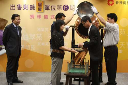 房委會共推出三千二百一十九個居屋貨尾單位,昨午舉行搖號儀式,以決定申請人的選樓次序。儀式由房委會資助房屋小組主席張炳良主持,綠、白表的申請人士,按申請表編號最后兩個數字。至于受清拆計劃影響的綠表優先家庭,按申請表編號最后一個數字。房委會將于下月中邀請合資格市民揀樓,市民最快可于九月收樓。