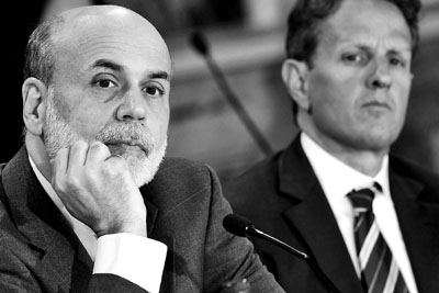 美聯儲主席伯南克(左)與財長蓋特納出席財政部會議。 圖片來源:香港《文匯報》
