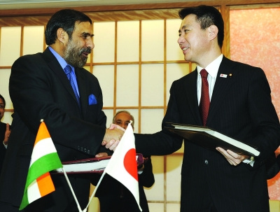 日本外務大臣前原誠司與到訪的印度商業和工業部長阿南德·夏爾馬分別代表兩國政府簽署了協定。兩國政要用“美妙”“具有歷史性”等詞句評價此次簽署的協議。前原表示,希望以此為契機,使兩國的戰略伙伴關系得到進一步發展。夏爾馬表示,正處于快速增長期的印度期待日本企業的進駐。