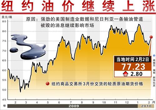 2月1日當天收盤時,紐約商品交易所3月份交貨的原油期貨價格上漲1.54美元,收于每桶74.43美元。倫敦市場3月份交貨的北海布倫特原油期貨價格上漲1 .65美元,收于每桶73.11美元。