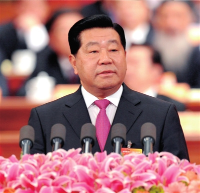 全國政協(xié)主席賈慶林作工作報告。(來源:京華時報 攝影:新華社記者黃敬文)
