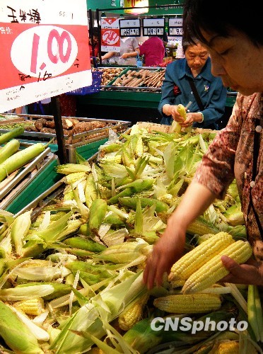 2010年6月6日,湖北宜昌市民在超市選購蔬菜、食品。據悉,針對部分媒體預測“下半年通脹壓力巨大,預計CPI漲幅在7%左右”的觀點,國家發改委有關部門負責人近日澄清稱,下半年CPI漲幅達到7%的判斷是沒有事實根據的。而且,中國今年將呈現出經濟平穩較快增長,物價溫和上升的格局,不會出現所謂的“滯脹”。 中新社發 劉君鳳 攝