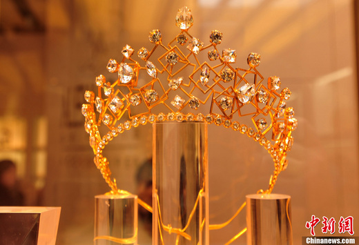 資料圖:14日晚,源自摩納哥的奢侈品展——TOP MARQUES國際奢華生活博覽會在成都揭幕。50多個世界頂級品牌,400多件珍稀展品,將在此進行為期三天的展出。圖為參展的珠寶。中新社發 安源 攝