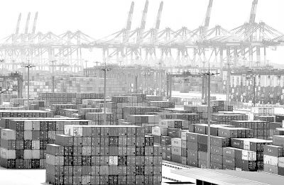 上海洋山深水港碼頭一景。上海市交通運輸和港口管理局發(fā)布的數(shù)據(jù)顯示,預(yù)計2009年上海港的貨物吞吐量將完成5.8億噸,基本與上年持平。新華社 陳飛 攝