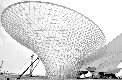 上海世博會世博軸“陽光谷”。上海世博園集成了大跨度索膜結構、“陽光谷”自然采光、雨水收集與回用、江水源和地源熱泵調控室溫以及冰蓄冷空調、光伏發電與建筑一體化、透水地面、垃圾氣力輸送、半導體照明、垂直生態綠化幕墻、節能電梯等一大批創新科技。 新華社記者 任瓏 攝