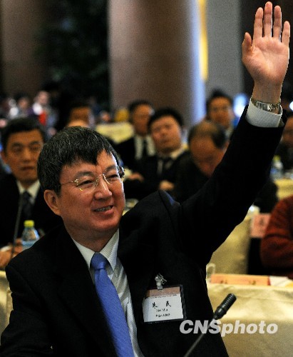 3月20日,中國發展高層論壇2010在北京舉行,國內外經濟專家濟濟一堂。圖為中國人民銀行副行長朱民舉手提問臺上的專家。 中新社發 劉震 攝