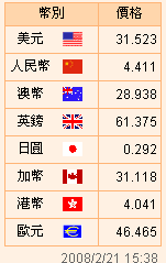 臺幣匯率公告2008.02.21