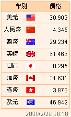 臺幣匯率公告2008.02.29