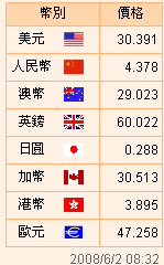 臺幣匯率公告2008.06.02