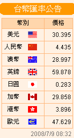 臺(tái)幣匯率公告2008.07.08