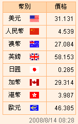 臺幣匯率公告2008.08.14