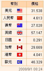 臺幣匯率公告2008.09.01