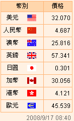 臺幣匯率公告2008.09.17