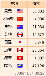 臺幣匯率公告2008.11.24