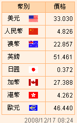 臺幣匯率公告2008.12.17