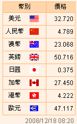 臺幣匯率公告2008.12.16