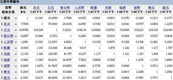 臺幣匯率公告