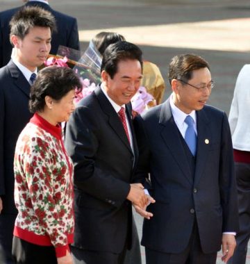 大陸海峽兩岸關系協會會長陳云林等人,20日中午搭機抵達桃園機場。陳云林直接下機,他向守候媒體及接機人員揮手。臺灣海峽交流基金會副董事長高孔廉等人前往接機,現場并有大批媒體守候。 “中央社”圖