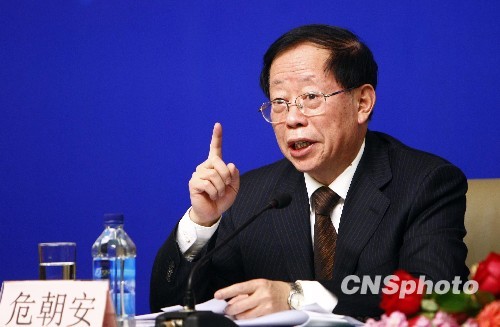 資料圖:2010年3月10日,十一屆全國人大三次會議新聞中心舉行“繼續保持農業農村經濟持續穩定發展”集體采訪,農業部副部長危朝安回答記者提問。 中新社發 杜洋 攝