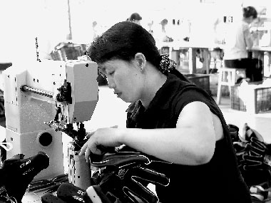 宏國(龍巖)運動用品有限公司員工正在趕制出口歐美的棒球手套。