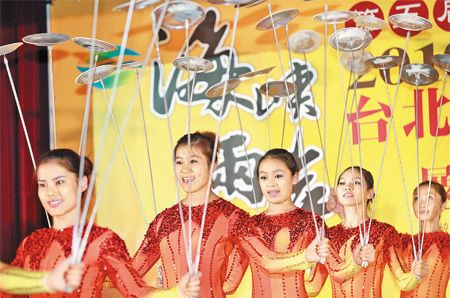 第5屆海峽兩岸臺北旅展今年擴大舉行,將提前于8月12日至16日在臺北世貿一館展出,來自哈爾濱的冰上特技團,昨天在展前記者會中表演雜耍,贏得熱烈掌聲。圖片來源:臺灣《中國時報》
