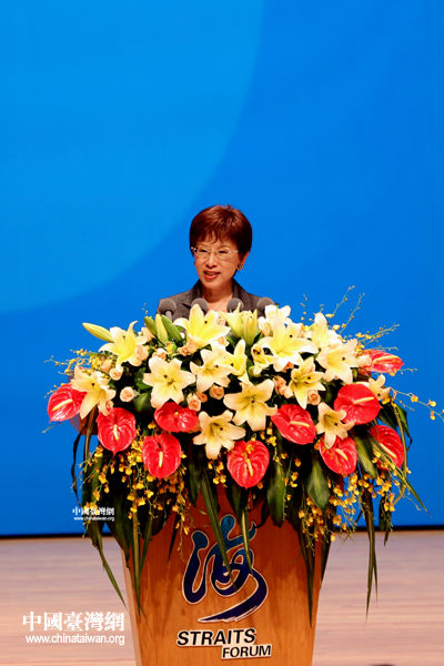 17日,第四屆海峽論壇大會在廈門舉行。圖為中國國民黨副主席洪秀柱在大會上發(fā)言。(中國臺灣網(wǎng) 王偉 攝)
