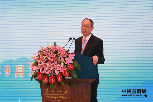 兩岸共同市場基金會最高顧問錢復在2012海峽兩岸企業家紫金山峰會開幕式上致辭(中國臺灣網 王偉 攝)