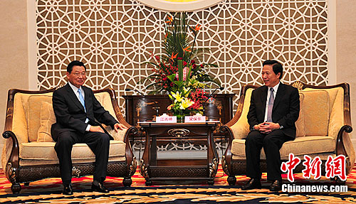 中共江蘇省委書記梁保華19日在昆山熱情會見由臺灣海基會董事長江丙坤率領的海基會董監事訪問團,并表示江蘇將就進一步深化蘇臺交流合作出臺二十多條優惠政策。王宇婷 攝