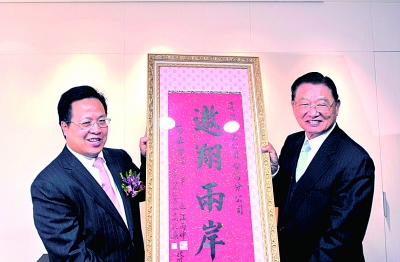 海基會(huì)向廈航臺(tái)灣分公司贈(zèng)匾。