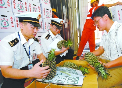 福建檢驗檢疫部門開辟“綠色通道”,盡量減少臺灣農產品通關時間。資料圖片