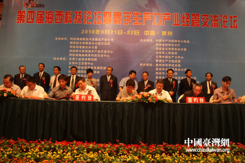 中國臺灣網6月21日泉州消息 以“加強科技創新 服務中小企業”為主題的第四屆海西科技論壇暨寰宇生產力產業經管交流論壇今日上午在泉州開幕,海峽兩岸科技合作項目對接簽約儀式同期舉行。