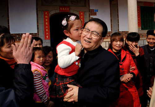 這是3月25日,李長(zhǎng)春在莆田市西天尾鎮(zhèn)龍山村調(diào)研時(shí)和藹地抱起一名小朋友。