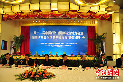 第十二屆中國(晉江)國際鞋業博覽會暨海峽兩岸文化創意產業發展(晉江)研討會現場。