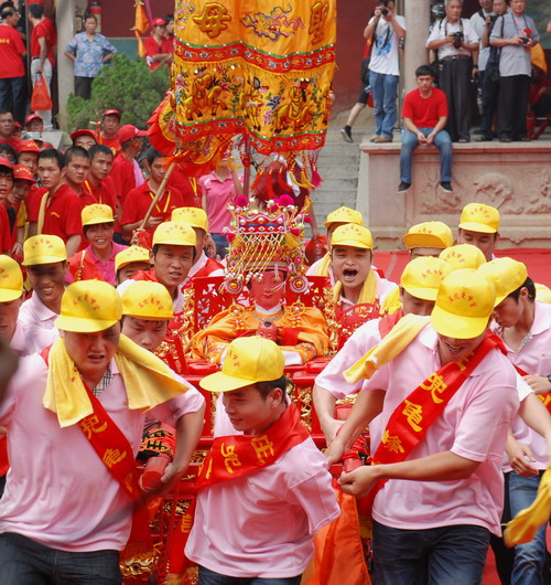 當日,福建泉州舉行“2010溫陵媽祖會”祈福祭祀活動,兩岸信眾匯聚泉州參加在此舉行的媽祖巡安踩街民俗活動及大型仿古祭祀儀典。新華社發(顏財斌 攝)
