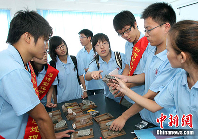 7月29日,兩岸學子在交流地理學學術問題。(圖片來源:中國新聞網 張麗君 攝)