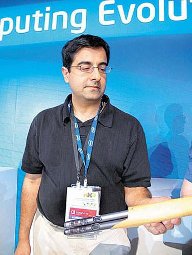 英特爾公開(kāi)展示了厚度僅1.4公分,全球最薄隨身型易網(wǎng)機(jī),2臺(tái)可一起放進(jìn)牛皮紙袋里。 圖片來(lái)源:臺(tái)灣《中國(guó)時(shí)報(bào)》