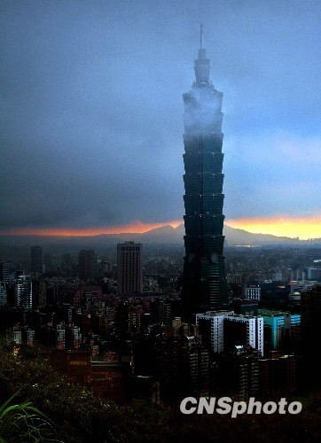 6月28日傍晚,臺北市一陣大雨后,從象山俯瞰市區,101摩天大樓聳入云霄,后山紅云如火,景觀如畫。美麗的臺北市地處盆地,氣候多變,夏季的城市景色也時常變幻莫測。 中新社發 宋吉河 攝