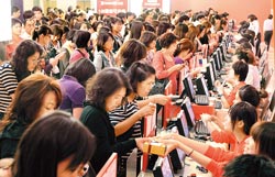 圖為臺中中港店內,消費者購物后再去兌換贈品人潮擁擠。圖片來源:臺灣中國時報