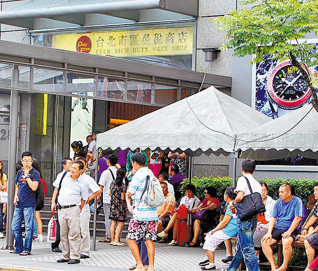 臺北市內湖一家免稅店幾乎每天都有大批大陸游客光顧。(圖片來自臺媒)