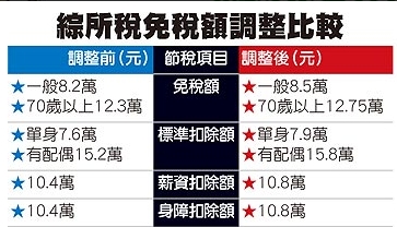 綜所稅免稅額調整比較 。圖片來源:臺灣媒體