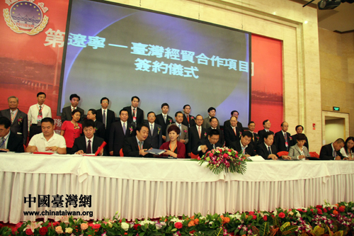 在開幕式后,16個經(jīng)貿合作項目舉行了集體簽約儀式。(中國臺灣網(wǎng) 馬迪 攝)