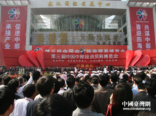 作為中部地區規模最大的博覽會,歷時3天的第三屆中國中部投資貿易博覽會28日在武漢順利閉幕。國務院副總理王岐山、香港行政長官曾蔭權、澳門行政長官何厚鏵、莫桑比工貿部長、斯里蘭卡企業發展部部長、菲律賓東達沃省省長、中部六省省長等領導出席了此次中博會。富士康、大潤發等臺資精英企業也派隊參展。