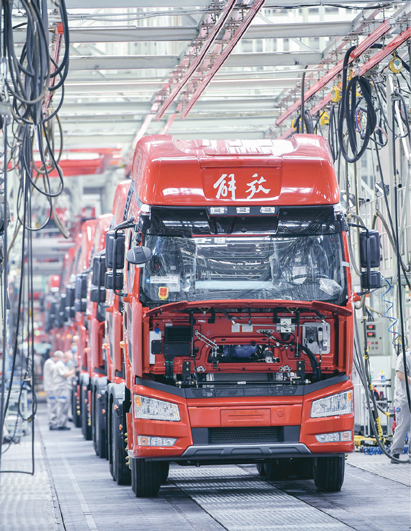 2020年8月10日,工人在位于吉林省長春市的中國第一汽車集團有限公司解放總裝車間裝配車輛。一汽2020年7月銷售整車32.2萬輛,同比增長23.2%,延續(xù)了上半年的增長態(tài)勢。 新華社記者 張楠/攝