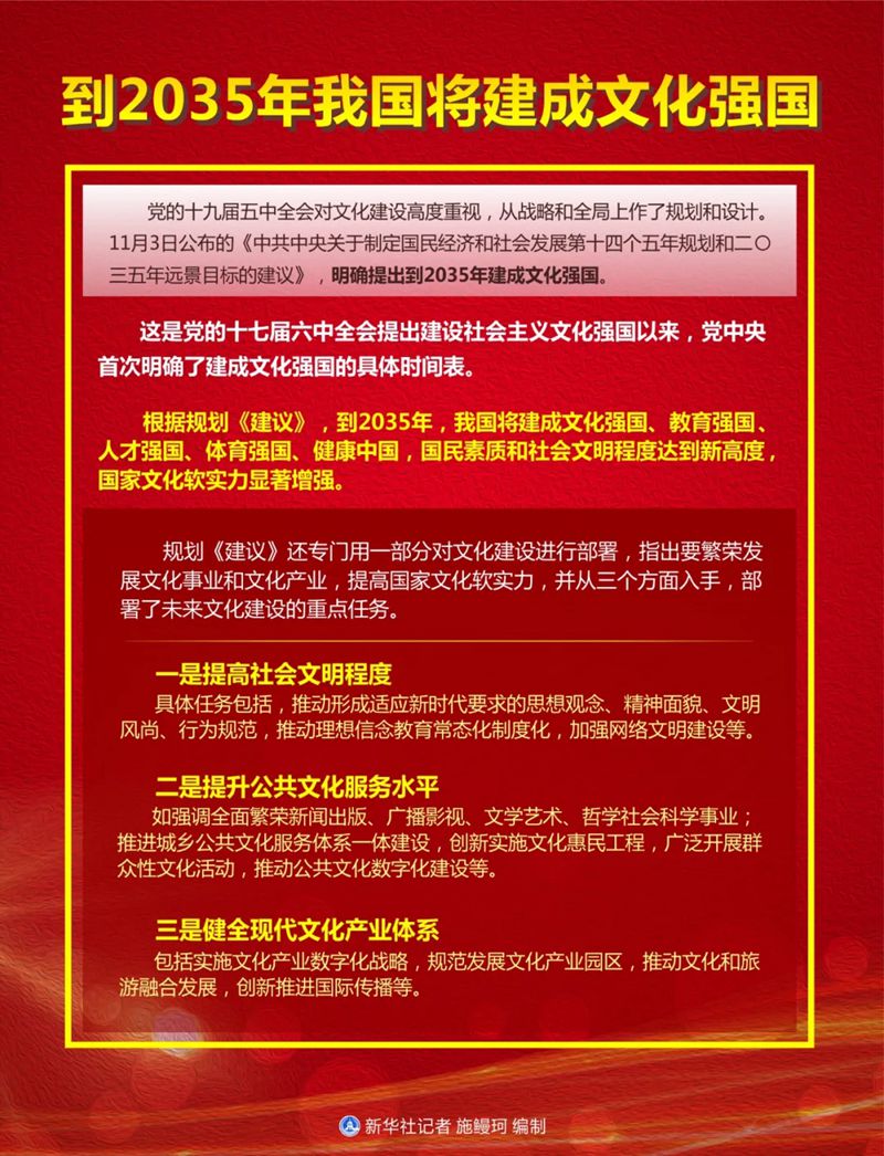 在“兩個一百年”歷史交匯點上,《建議》強調“提高社會文明程度”,深刻把握了全面建設社會主義現代化國家的文化導向和文化功能,指明了文化強國的文明水準和社會基礎,對建設社會主義文化強國,開啟全面建設社會主義現代化國家新征程具有重大意義。