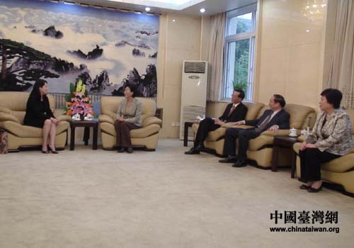 安徽省副省長花建慧與高金素梅一行交談(圖片來源:安徽省臺辦)